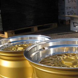 Ces rares et superbes jantes ne seront sans rappeler le fameux German Look. D'un très bon rapport qualité prix, elles sauront séduire ! Les Dare RS 17 pouces finition or à rayons croisés et rivets argent sont des jantes classiques d'époque qui conviennent aux voitures de tous âges.