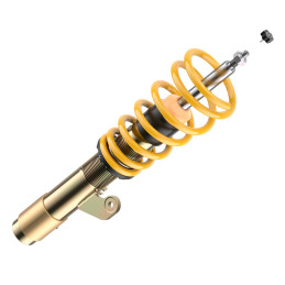 Avec la caractéristique d’amortissement réglable, les combinés fileté ST XA offrent la possibilité d’ajuster individuellement la configuration des amortisseurs. La technologie d’amortissement utilisée provient de KW. Elle permet de rendre les combinés fileté ST XA plus fermes ou plus confortables selon les souhaits du conducteur. Le réglage des amortisseurs s’effectue à l’extrémité supérieure de la tige de piston chromée. En augmentant la force de traction, la voiture gagne encore en tenue de route et les mouvements de caisse diminuent. Si un réglage plus confortable est souhaité, il se fait également via la molette de détente. Les amortisseurs réglables permettent également de prendre en compte le passage à une autre dimension de jante. Mais même en configuration d’amortissement de base, un véhicule équipé d’un combiné fileté ST XA est nettement plus agile et offre des caractéristiques de conduite plus sportives qu’un châssis d’origine.