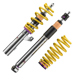 Le KW V3 est l’accessoire idéal pour les conducteurs orientés performance et les passionnés de tuning, qui exigent un haut niveau de sportivité pour leurs véhicules. Les amortisseurs, réglables séparément en compression et détente, permettent grâce à leur molette crantée un réglage complet de l’amortissement. Il est ainsi très facile d’influencer directement les caractéristiques d’entrée en virage, la précision de trajectoire, l’adhérence des pneus et le comportement pour une maîtrise sûre en limite.