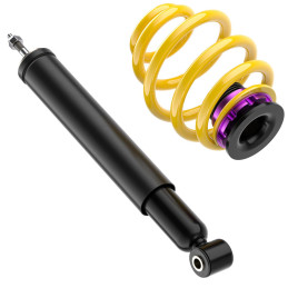 Le kit KW V1 dispose d'un réglage d'amortisseur spécifique au véhicule, configuré en usine. Le ressort et l'amortisseur sont parfaitement accordés pour que vous puissiez profiter d'un équilibre optimal entre sportivité et utilisabilité quotidienne au volant. Même en cas de charge maximale et de charges d'essieu maximales, les amortisseurs offrent toujours une courbe de réponse sportive. Le kit KW V1 intéresse particulièrement les passionnés de tuning pour qui l'esthétique Show & Shine est primordiale.