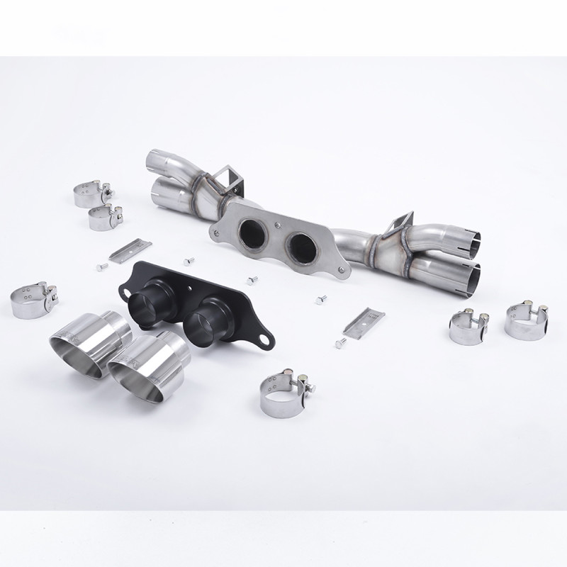 Système d'échappement arrière Marque: Milltek Pour Porsche 992 GT3 Diamètre du tuyau: 70.00mm Produit de course: Non Marqué EM: Non Plusieurs finitions possibles pour les embouts (en option)